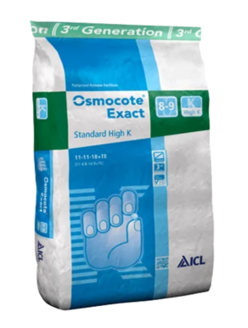 Osmocote Exact Standard High K 8-9M patří ke třetí generaci hnojiv Osmocote s řízeným uvolňováním živin. Jedná se o hnojivo, které v sobě kombinuje stálou kvalitu a spolehlivost s uvolňováním živin dle předem určeného vzorce a navíc ještě obsahuje přídavek draslíku. Zejména vhodné pro hrnkové a záhonové rostliny, trvalky a všude tam, kde je třeba kompaktní růst.